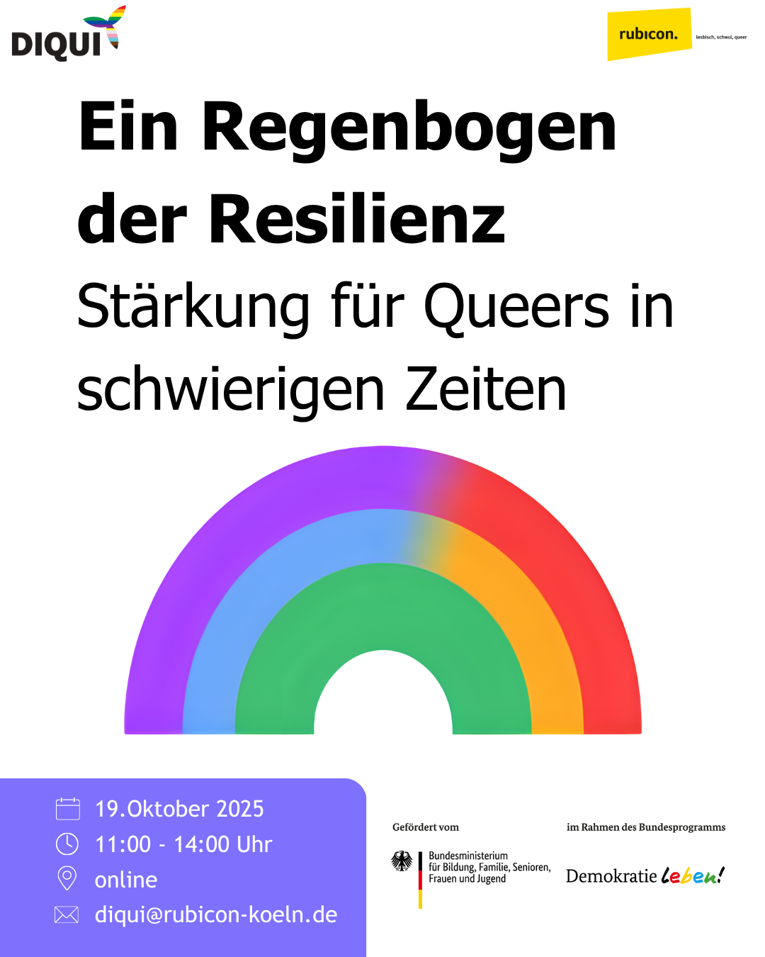 Die Gruppe trifft sich jeden dritten Freitag im Monat von 16:00 Uhr bis 18:00 Uhr, z.B. auf Spielplätzen, im Park oder im rubicon. Infos, Kontakt und Aufnahme in den Mailverteiler und/oder in den Chat: krakelas@web.de Weitere Infos zur Gruppe: https://rubicon-koeln.de/gruppen/krabbelgruppe-fuer-regenbogenkinder-u-eltern-krakelas/