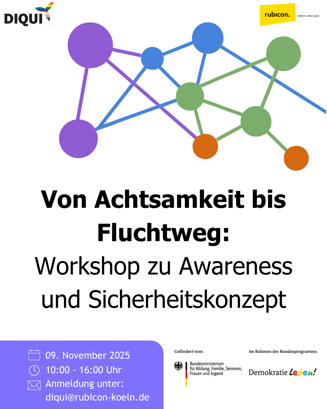 Die offene Gruppe lädt zum Frühstück ins rubicon (Rubensstraße 8-10, 50676 Köln) ein, um sich in entspannter Atmosphäre auszutauschen und neue Kontakte zu knüpfen. Besonders freuen sich die Latebloomer*, ihre Gruppe vorzustellen – ein Ort für Frauen*, trans*, inter* und nicht binäre Person, die ihre sexuelle Orientierung erst später im Leben entdeckt haben, und für […]